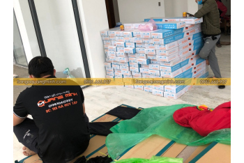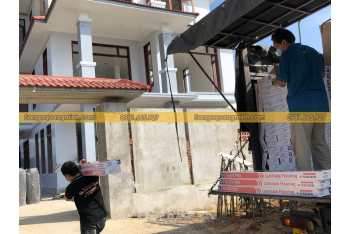 Chuẩn bị thi công sàn gỗ egger đức cho khách hàng tại Vinh