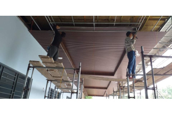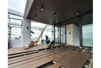 Thi công Gỗ nhựa ốp trần ngoài trời ecovina
